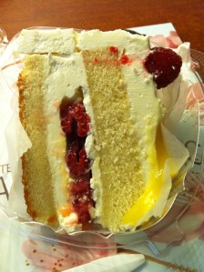 When I walk into a place and ask what the “MUST HAVE” item is, I don’t expect hesitation followed by “well the most popular item is xyz”. That wasn’t the question. Don’t you eat what you sell? If 150 people walk in to a shop and order poo stew purely because they want to know what it tastes like, that makes it pretty popular, but not something you want to try (not this guy anyway). I am not the type to go with what is popular, I want to go with what tastes freakin’ awesome. I went for the raspberry filled cake with a lemon topping.